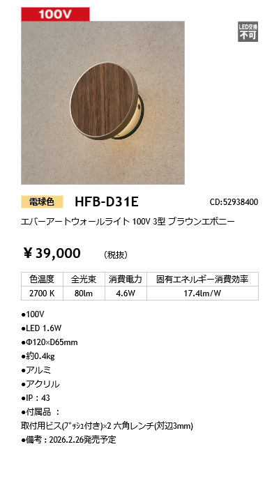 エバーアートウォールライト 100V 3型 ブラウンエボニー