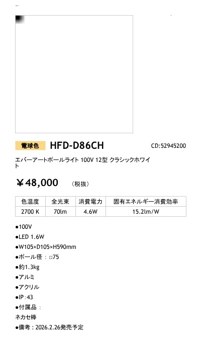 エバーアートポールライト 100V 12型 クラシックホワイト