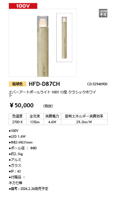 エバーアートポールライト 100V 13型 クラシックホワイト
