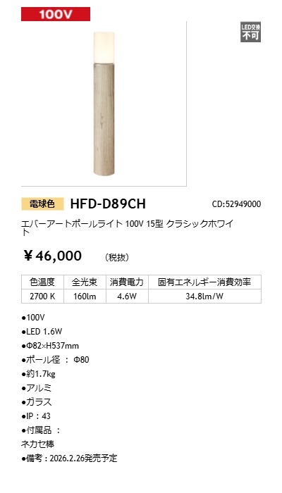 エバーアートポールライト 100V 15型 クラシックホワイト