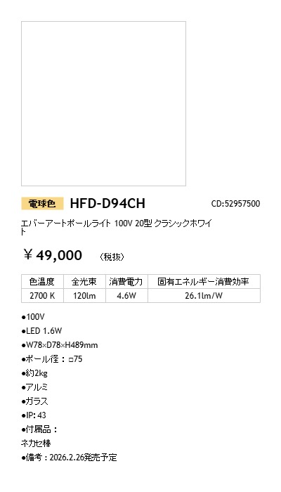 エバーアートポールライト 100V 20型 クラシックホワイト